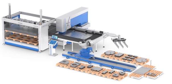 Das Werkzeug, das den Automatisierungsprozess von Blechbearbeitungsmaschinen vervollständigt. Dank Sorting Cell wird die Euromac-Stanzmaschine zu einer kompletten und automatisierten Arbeitsstation, die die Bearbeitungs- und Lagerzeiten optimiert.